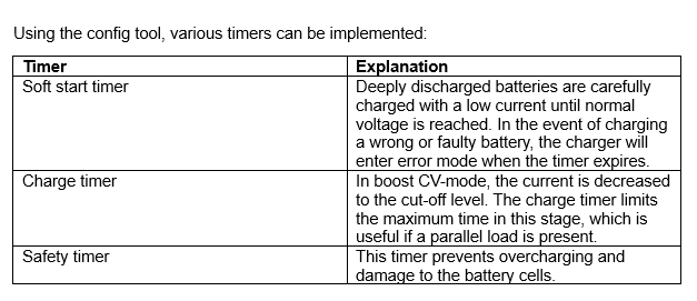 If temperature readings are required, LA chargers with a positive temperature coefficient (PTC) sensor are available, allowing the charger to automatically adjust the voltage according to the ambient temperature. Customers can set temperature limits for protection, including hot, cold, and charge pause++ settings. These limits can be set as either a pause, where charging resumes when the temperature reaches a safe level, or a hard cutoff, which halts charging and triggers an error code.