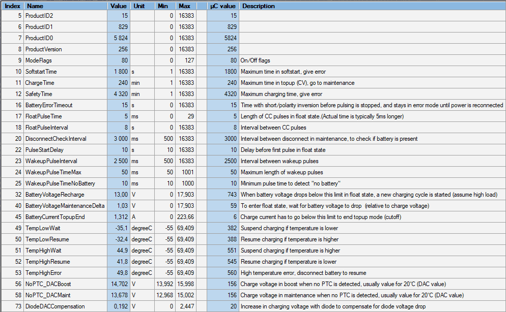 Figure 1 - All configurable parameters for LA chargers