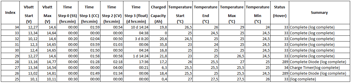 Figure 4 - Example of a charge log