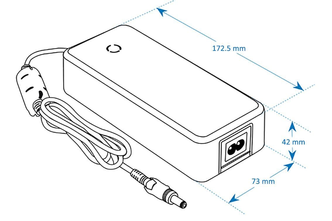 - DC Cordset for exch. DC plugs available (≥16V): 1.2m Coax 18AWG, UL1185