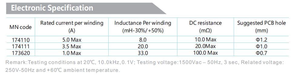 - Inductance: 8.0mH-20.0mH