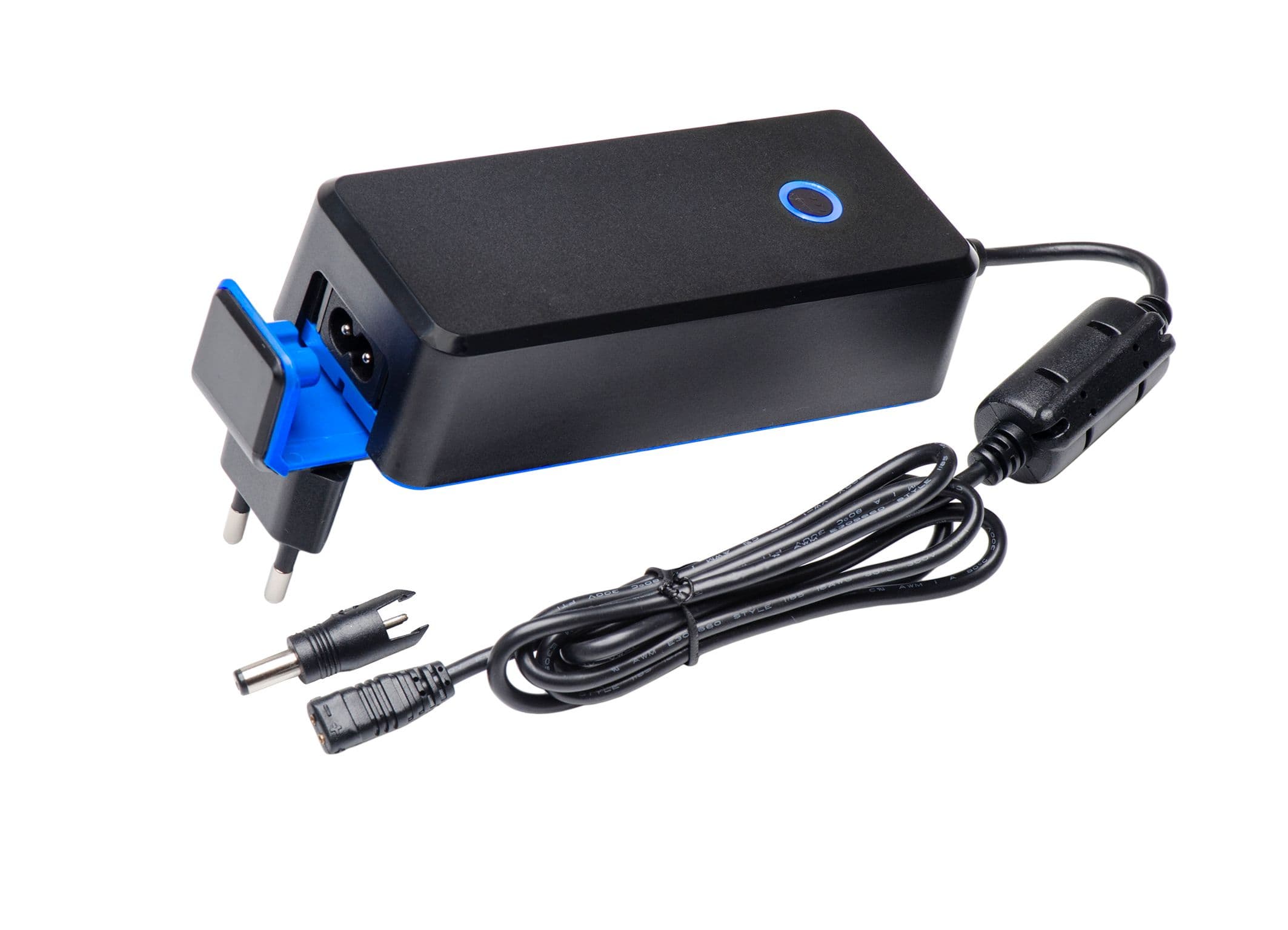 - Exchangeable AC and DC plugs